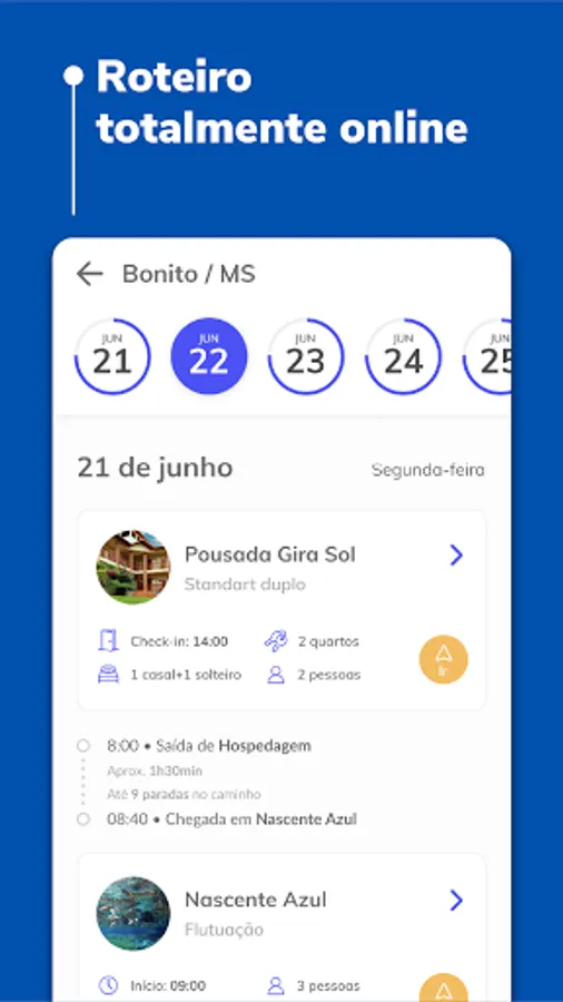 Do you want to have more control and autonomy over your travel itinerary? In the app, all activity reservations are listed so that you can access information on purchased tours whenever you want. With this, it is possible to view important information about what to take for the tours, how to get to the destination, duration of each activity, local infrastructure and much more.