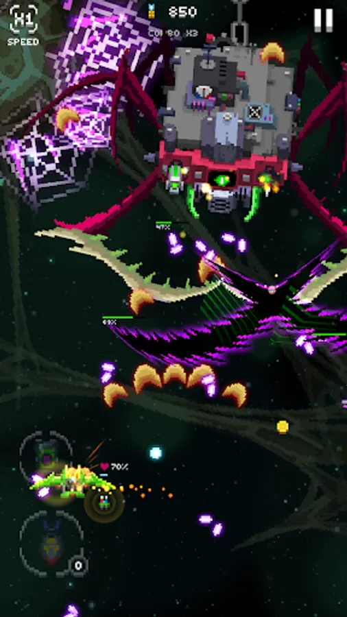 “Pixel Craft 2: Anger of Goose” will strike you with an intense impression of the classic arcade shoot’em up spirit like Strikers 1943, Tyrian, Galaga,Galaxian but with modernized visuals and design. You will immediately come to love with the incinerating flame and bullets, colossal bosses and diverse aircrafts and skillful squad.