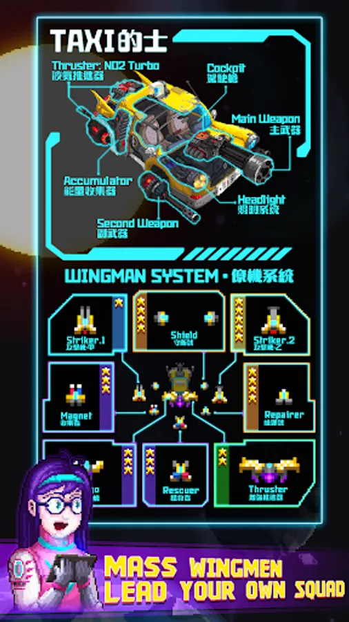 ⭐ Pick up 8 wingmen from your huge wingman base and fight for you at the same time.