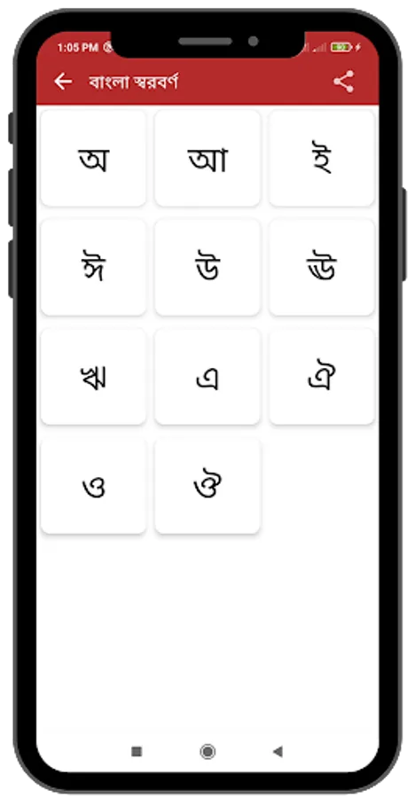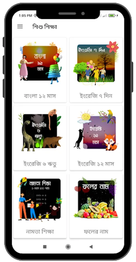 This Bengali alphabet (বাংলা বর্ণমালা) apps also contains the names of animals and birds and their roar.