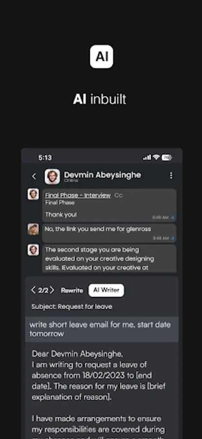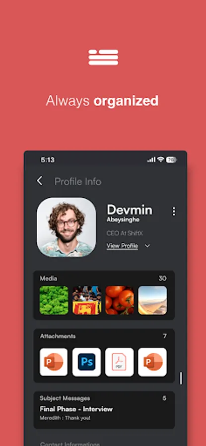 The ZapMail app gives you the best experience in connecting with people using conversational emails regardless of the platform they use. While allowing its users to maintain hassle-free conversations, ZapMail maintains other major aspects of traditional email systems like subjects, copying to others and having custom domains for businesses- all synced with your digital business card.
