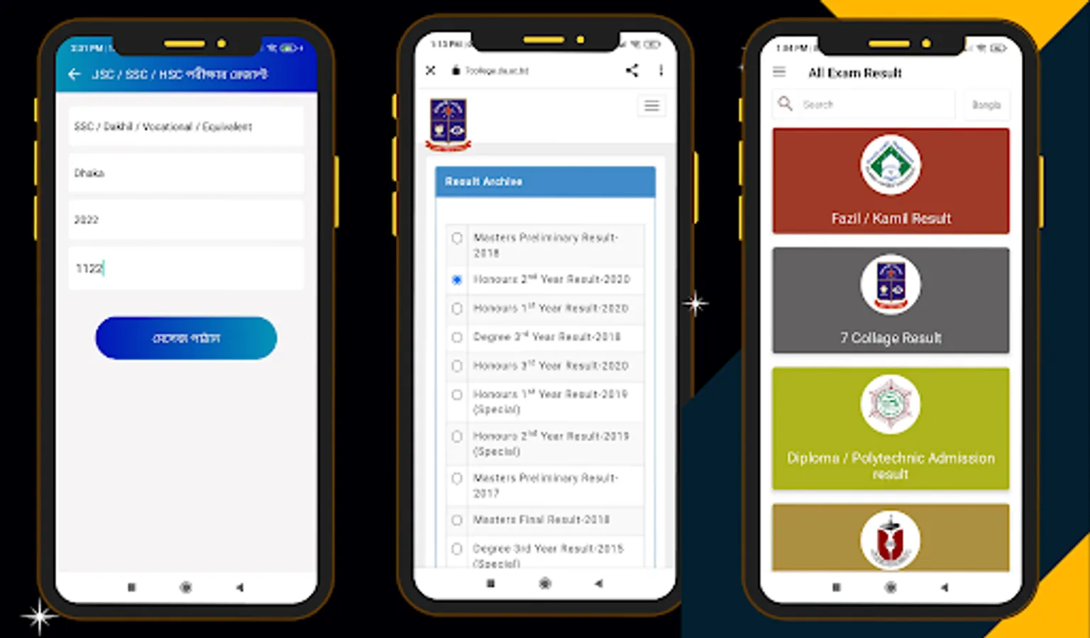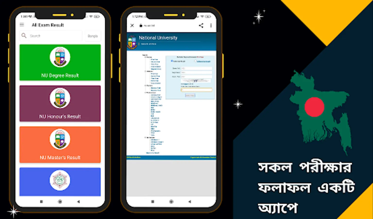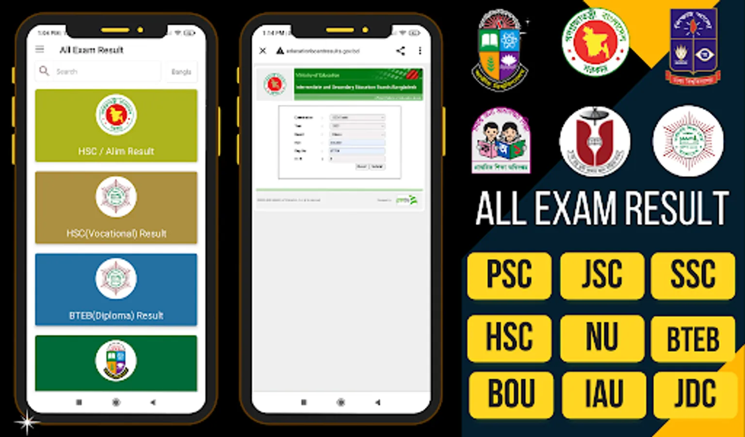 Disclaimer : In this application people can find there all education board results. We are not an official partner of the government or associated in any way with the government. The application is developed as a public service to help Bangladeshi residents to find there exam result. The application is not affiliated with any government services or person. The content of this application is available free on public domains. We do not have any copyright over the logo/content of any government websites.