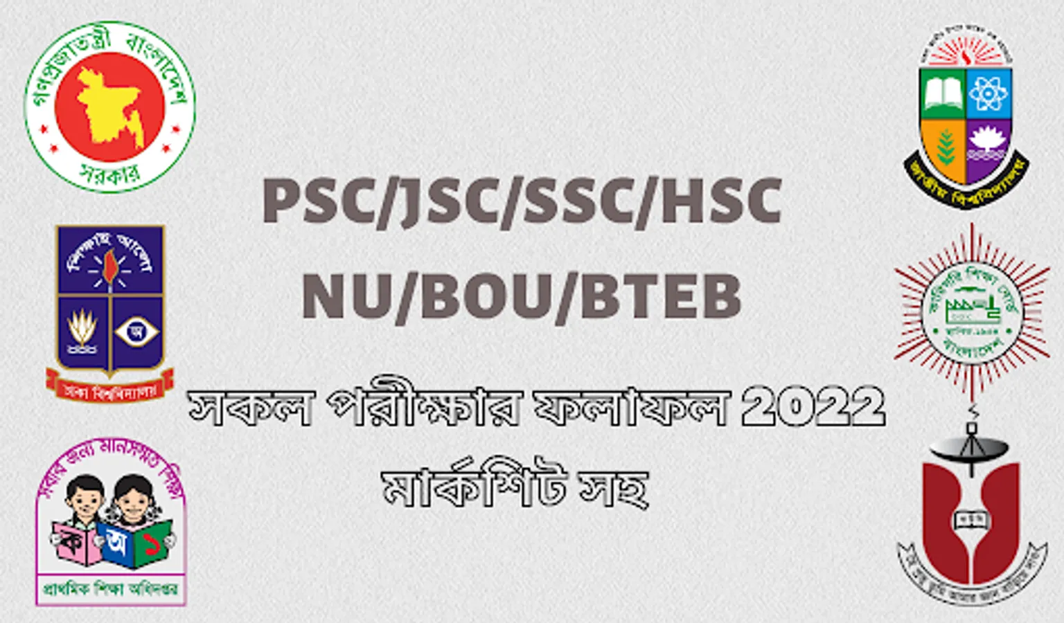 all exam results bd-মার্কশীট সহ PSC / SSC / HSC ফলাফল মার্কশিট সকল বোর্ডের রেজাল্ট ও নাম্বার জানা যাবে। মাধ্যমিক ও উচ্চমাধ্যমিক শিক্ষা বোর্ড ভর্তি তথ্য পেয়ে যাবেন হাইস্কুলের জেএসসি - JSC result 2023 এসএসসি এক্সাম রেজাল্ট। মার্কশীট সহ এইচএসসি ফলাফল দেখার নিয়ম, টেকনিক্যাল ও কারিগরি (Diploma Exam Result) শিক্ষার জিপিএ সহ সম্পূর্ণ নোটিশ পাওয়া যাবে।