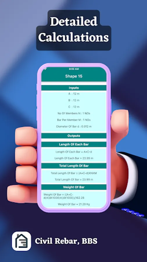 Rebar Bar bending schedule Steel calculation is very useful for civil engineers and for those who work in the construction industry. Steel weight calculator for the reinforcement calculations. This app helps you to prepare a Bar bending schedule in detail.