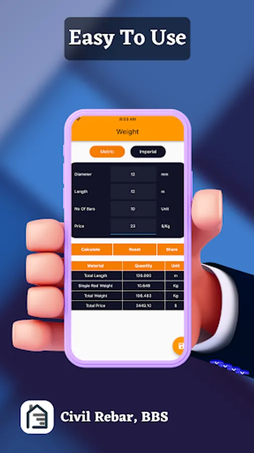 A simple tool to calculate how much construction steel is needed for the slab, column, retaining wall, footing, beam.