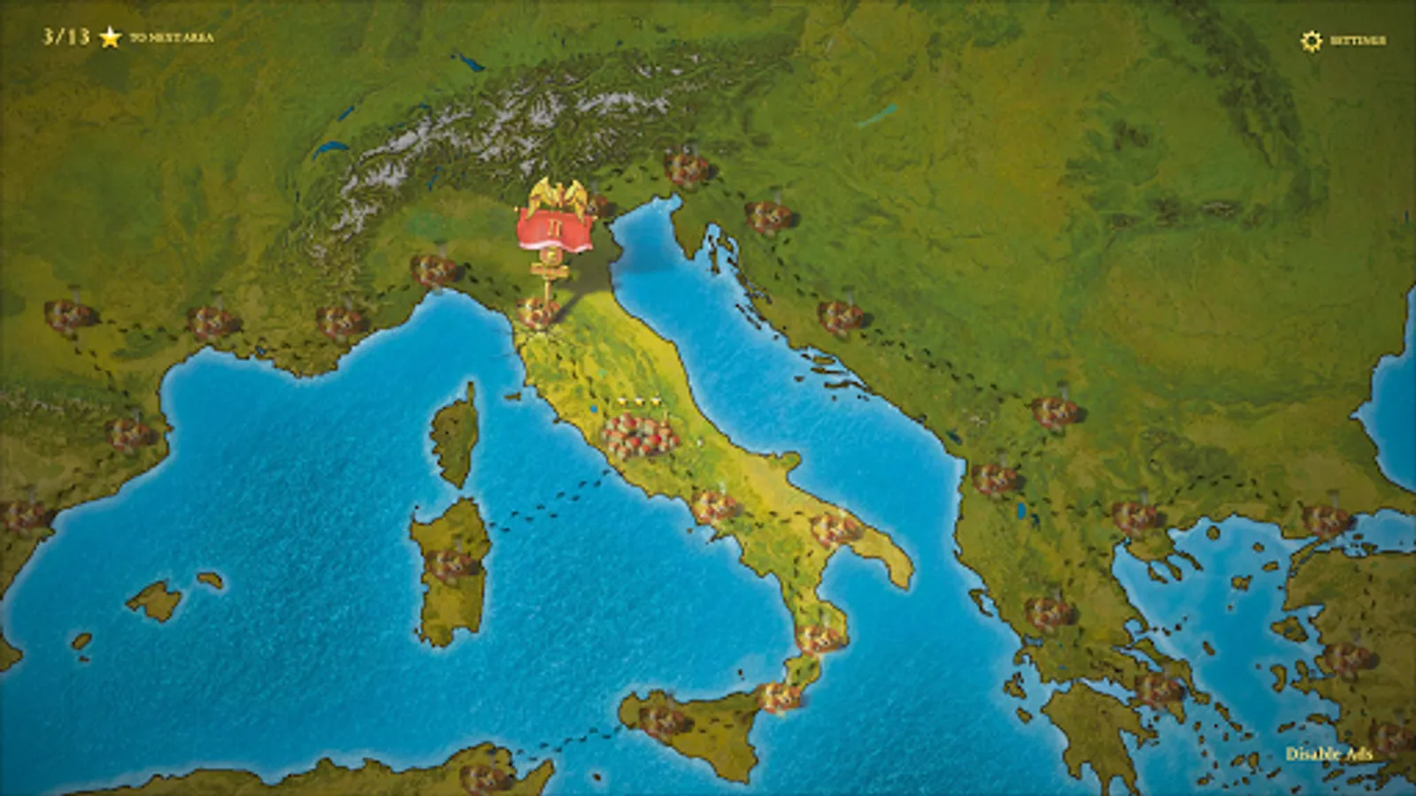 - Large map of Europe with your current location. Complete levels to move to the next ones.