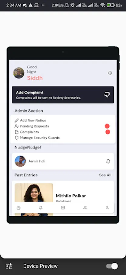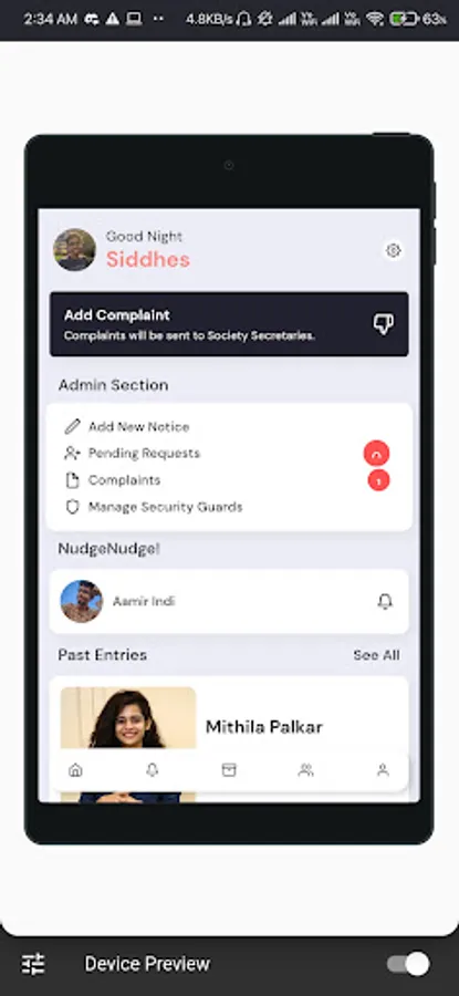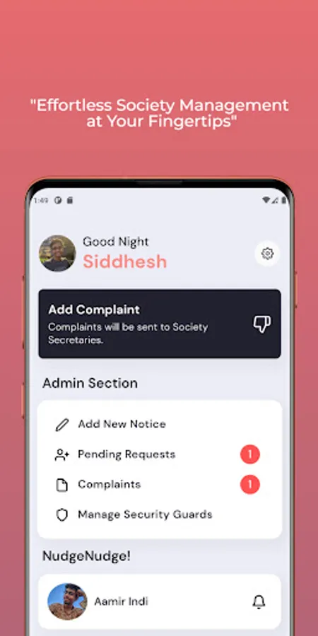 Admin Control: Society secretaries can efficiently manage notices, pending requests, and accounts, streamlining administrative tasks.