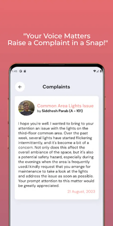 Complaint Resolution: Empower residents to report issues conveniently, fostering a responsive environment for quick problem-solving.