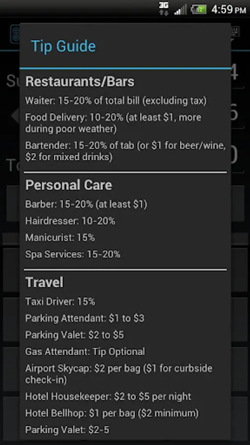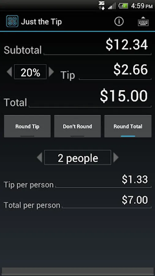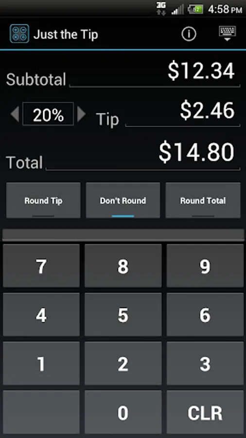 This app has a built in tip guide for those times when you don't know how much to tip, and it features a large built in keyboard for easy subtotal entry for even the largest of thumbs.