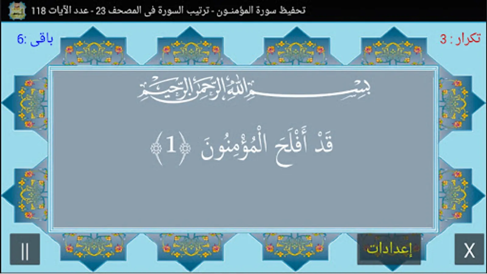 Teaching and memorizing the Qur’an through the separate surahs - The Noble Qur’an, part (18) Surah Al-Mu’minun The order of the surah in the Qur’an [23] The number of its verses is (118) verse