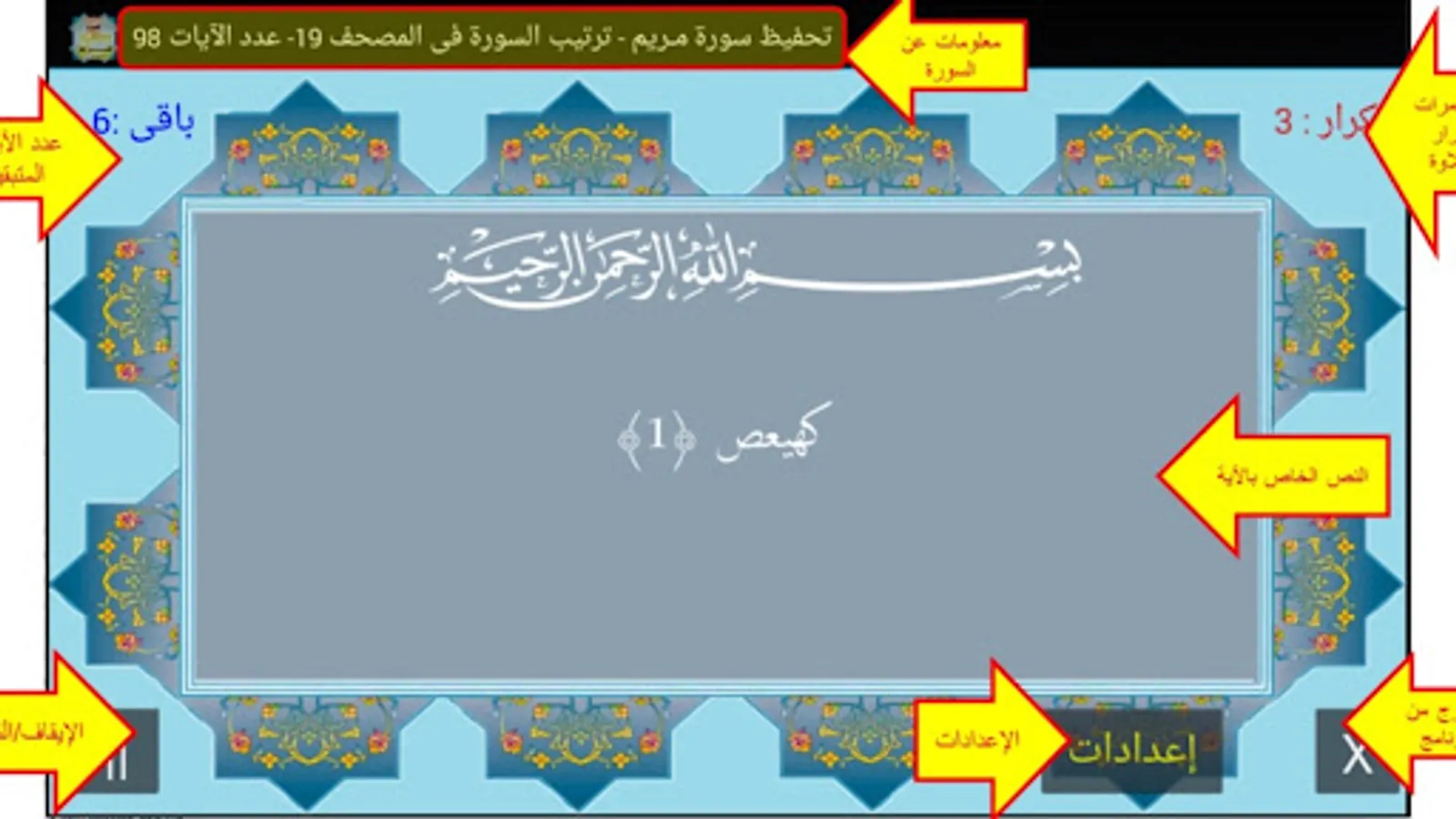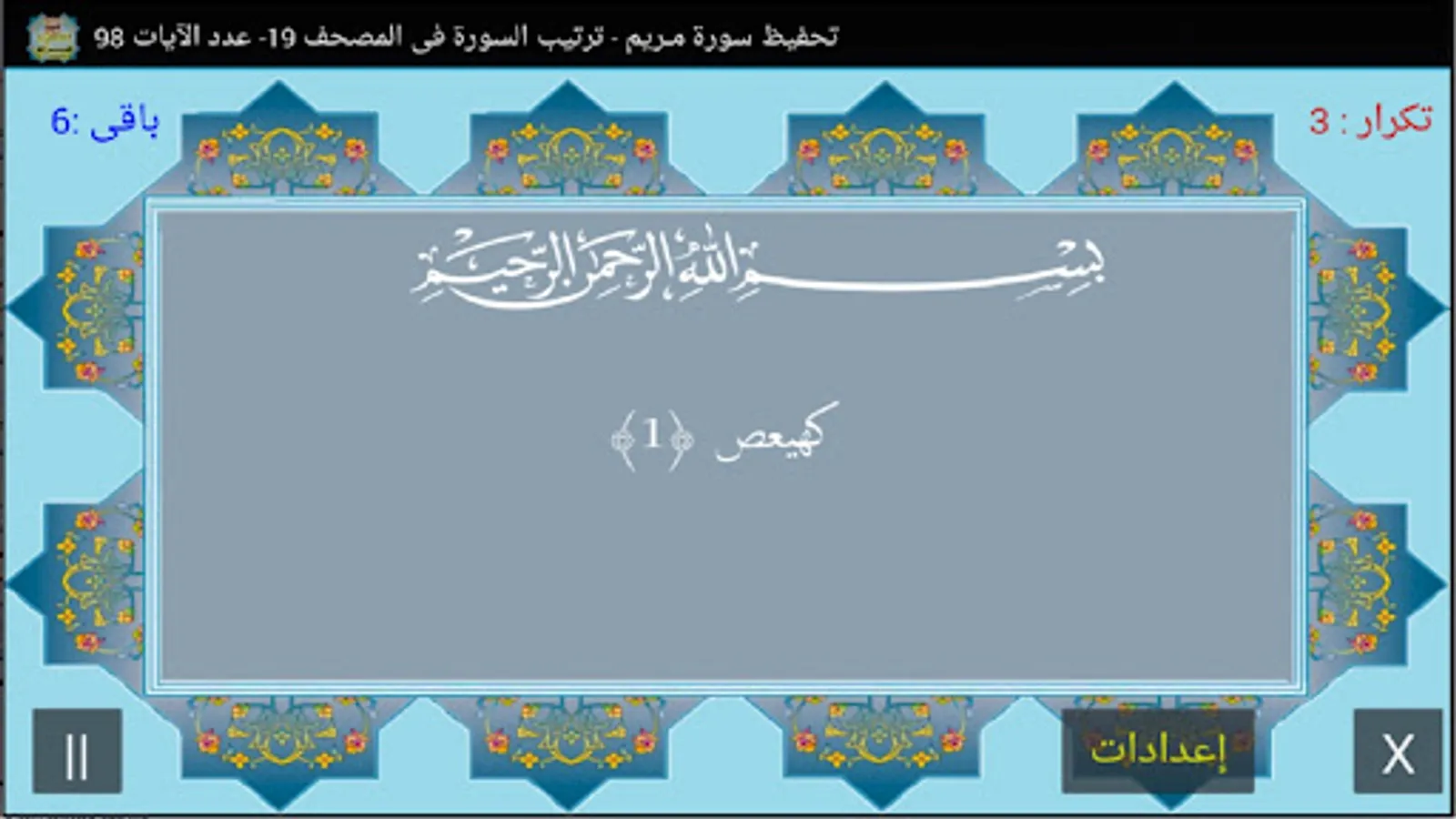 Teaching and memorizing the Qur’an through the separate surahs - the Holy Qur’an, part (16) Surat Maryam, the number of the surah in the Qur’an [19], the number of its verses is 98