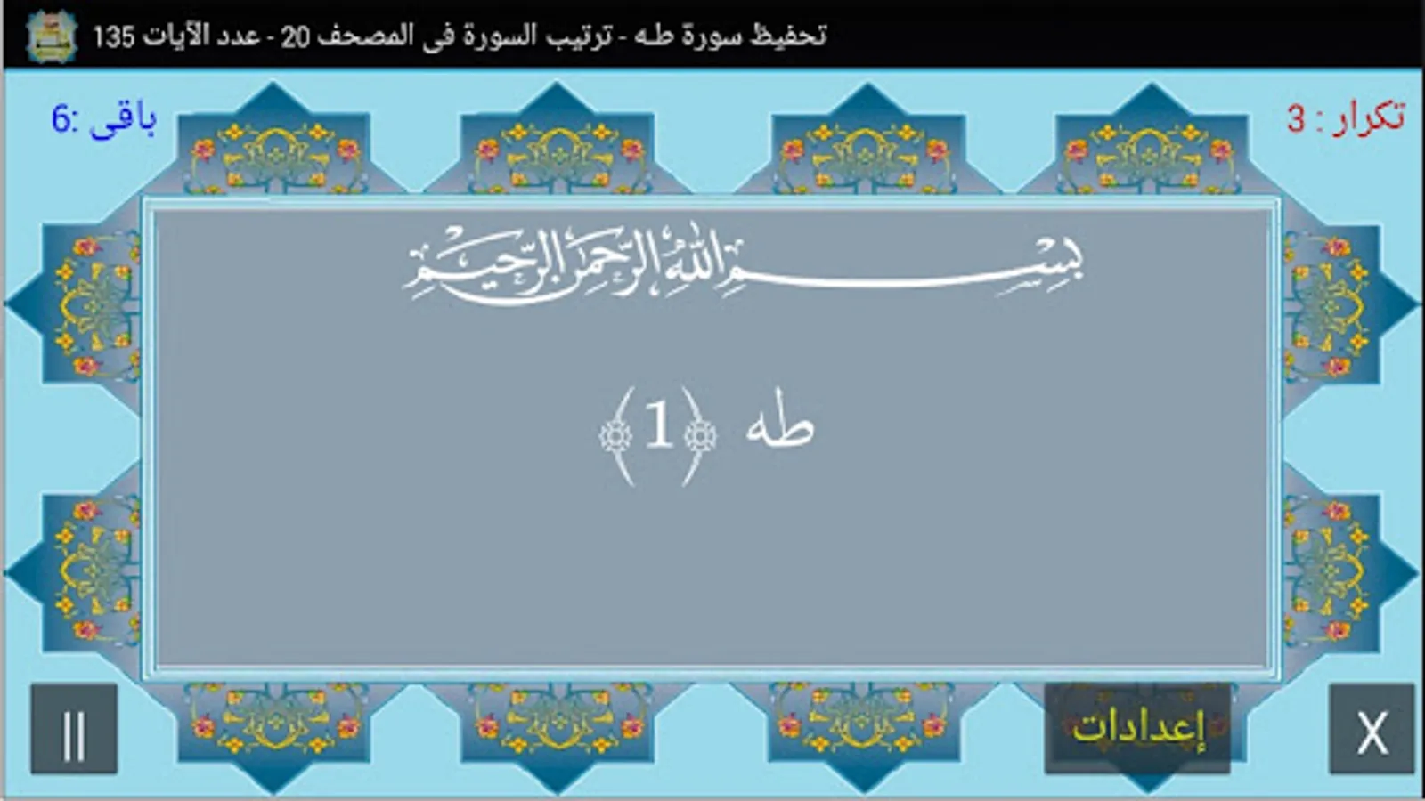 Teaching and memorizing the Qur’an through the separate surahs - The Noble Qur’an, part (12) Surat Taha The order of the surah in the Qur’an [20] The number of its verses is (135) verse