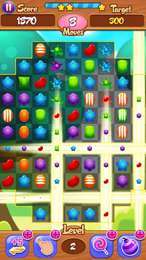 Form special jellies with match 4 and 5 that will take out an entire row or column, or a special jelly that will remove an entire jelly type.