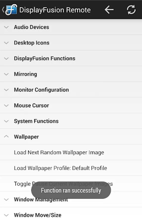 Remotely control DisplayFusion on your computer! Change your wallpaper, move windows around, enable/disable monitors and hundreds of other abilities, all from your phone or tablet! Includes full Android Wear support to control DisplayFusion from your Android Wear Watch.