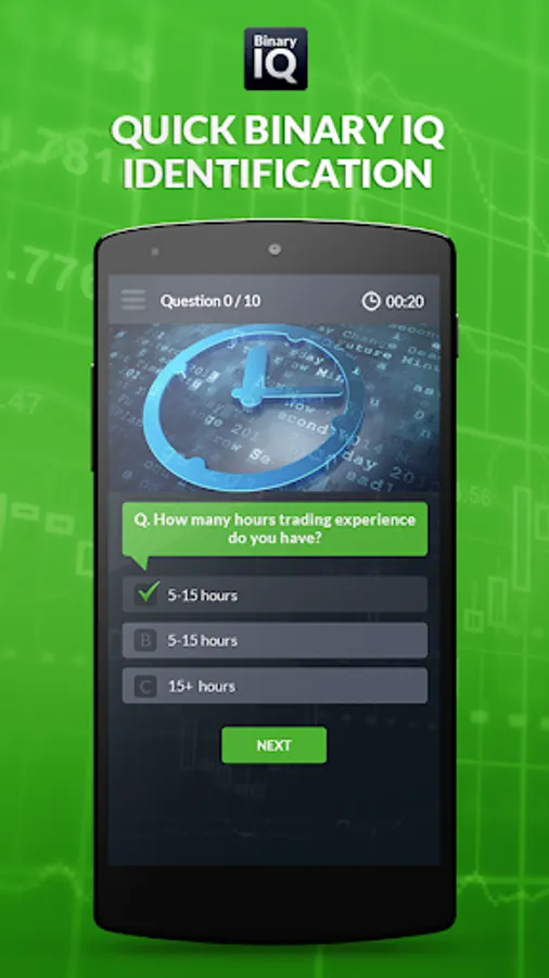 The Binary Advisor has created a unique app "Binary IQ". The Binary IQ app will help traders of all levels identify their trading level may it be beginners, intermediate or advanced. The trader will answer ten questions which will help our algorithm give you the feedback you need before making your first investment. The Binary IQ app will also help you strengthen the weaker areas in your understanding of binary option.