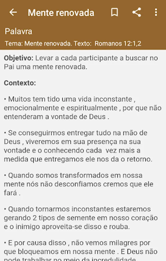 In this application you will find weekly studies for small group cells, with the aim of providing a greater understanding and deepening of the Word of God.