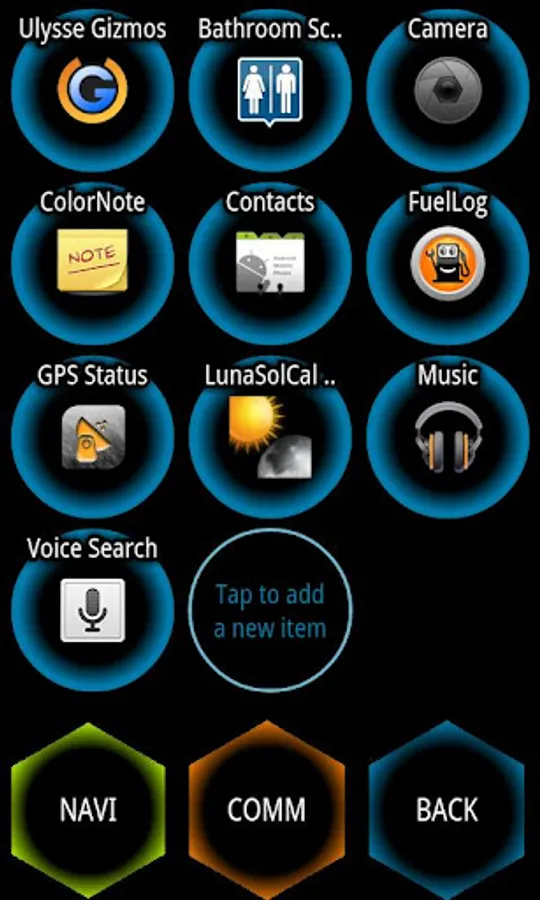 ★ Three shortcut pages—Application, Communication, Navigation; for a total 36 user-defined application shortcuts