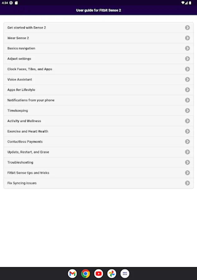 Learn to manage exercise, heart health, ECG, stress & sleep with Fitbit Sense 2 advanced health & fitness smartwatch. This application is designed to help you make the most of your Fitbit Sense 2. If you are looking for easy to read Fitbit sense 2 manual, you can use this app. Things includes: