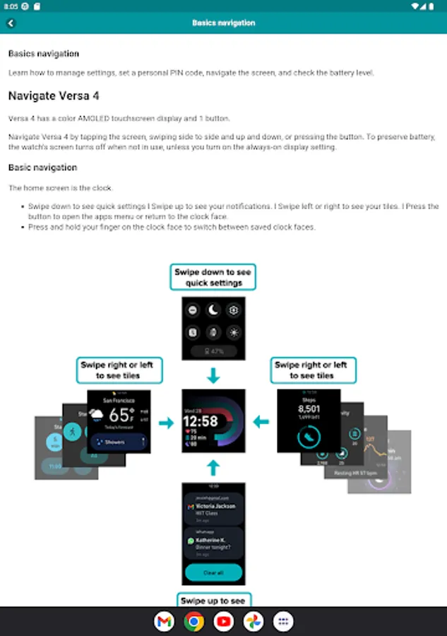 Get all essential tips and tricks for you Fitbit Versa 4 smartwatch. Fitbit Versa 4 is a solid activity, sleep and wellness tracker in a smartwatch form. It helps to view your heart rate in real time during exercise with 24/7 heart rate tracking. Versa 4 includes 40+ exercise modes so that you can exercise more. From this app, you will get: