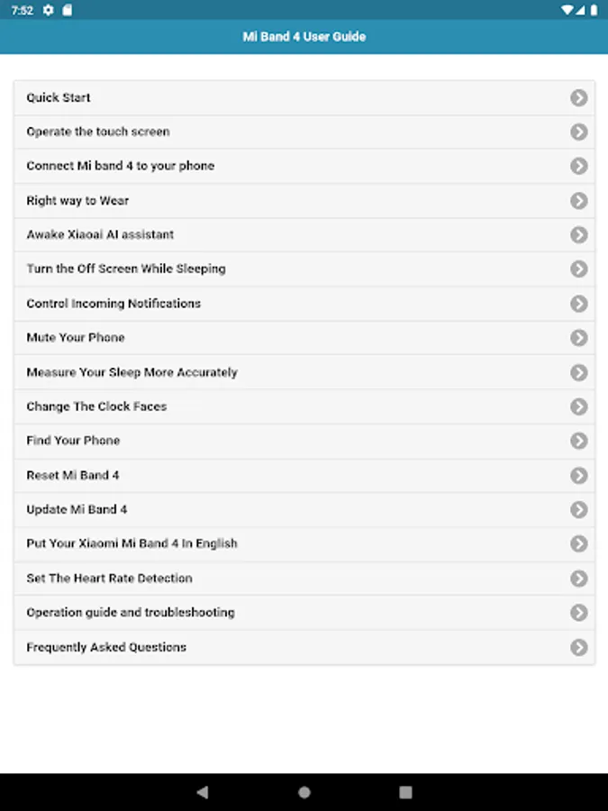 Mi Smart Band 4 will track your heart rate, calories burned, your pace and step count, records 12 data sets including swimming pace and stroke count etc. Install this app and learn how to use your Mi Band 4 more efficiently.