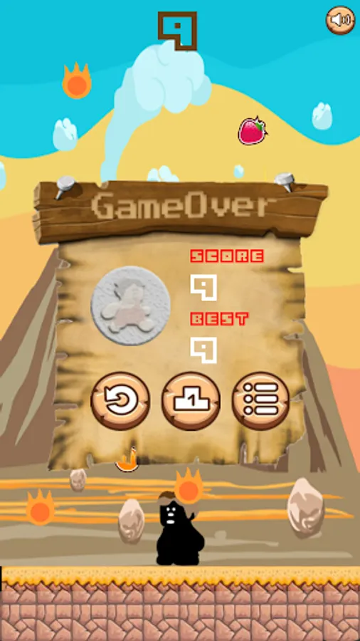 Click on the screen to help this little guy avoid falling stones, snow or the cold of lava erupted from volcanoes and earn a lot of food.