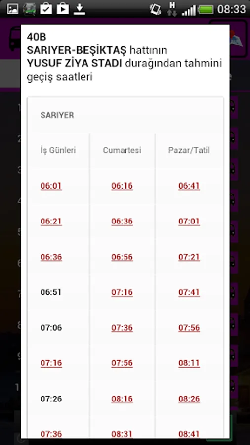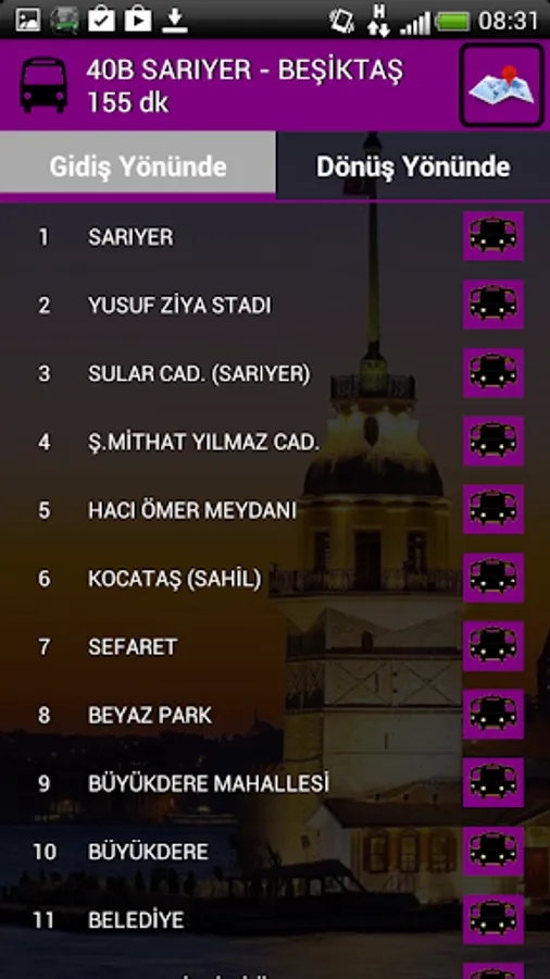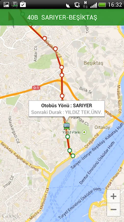 - Otobüs hattının tüm duraklarının haritada gösterilmesi