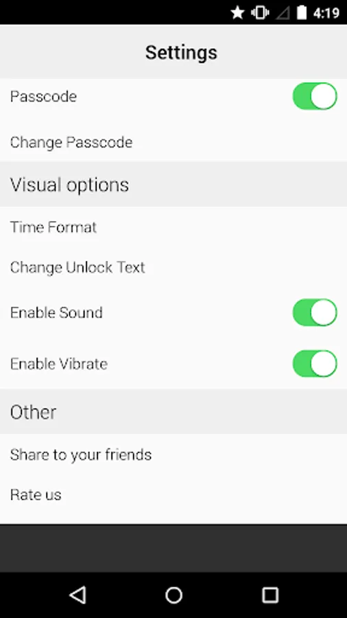 You can select various wallpapers, fonts, date and time format, unlock text and a lot more to make your unlock screen look nice and cool!
