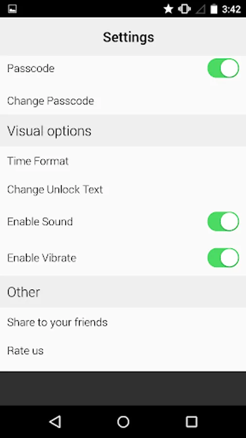 When you open the application you will see a lot of settings which will allow you to customize the Lock Screen. Simple and user–friendly interface will help you to customize the application.