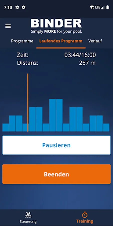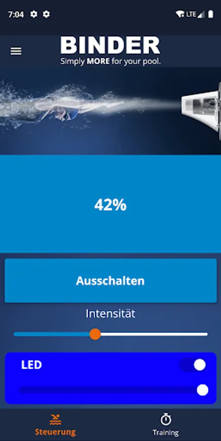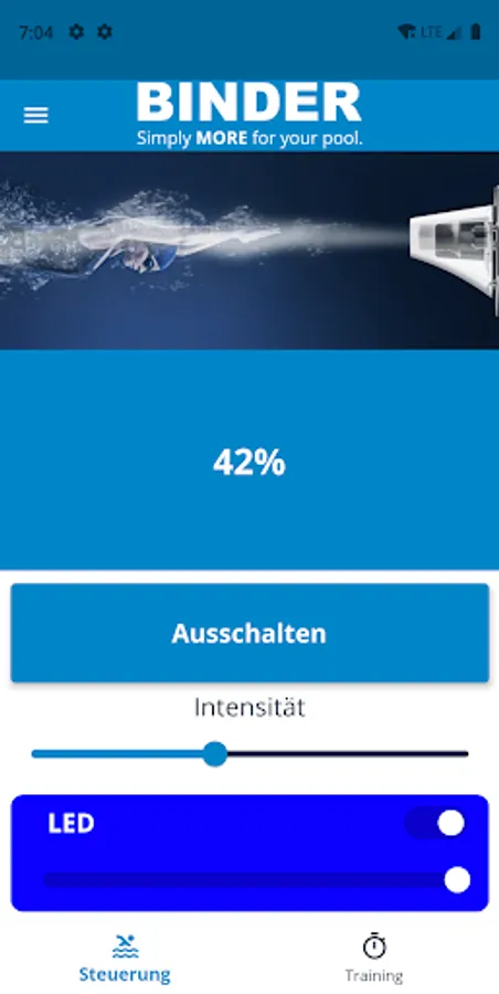 Binder's countercurrent system can be controlled with this app. It is possible to adjust the flow speed of the stream continuously. It is also possible to create individual training programs.
