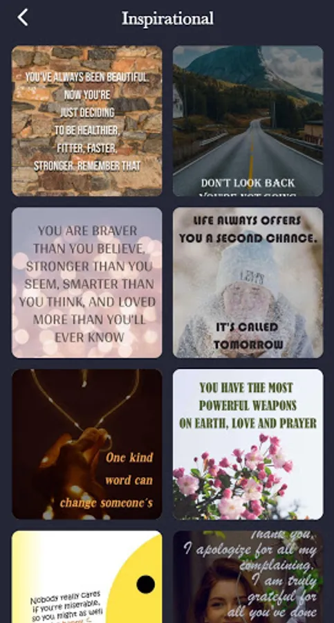 Text Font style, Text Align, Background(Pick Image from gallery/Add Color), TextSize, TextColor options for make your own Quotes, ✔️ Make Favourite & Set as wallpaper You can make favourite and set quotes as wallpaper, ✔️ Intelligent Options View, Share, WhatsApp, Favourite, Set as Wallpaper options for Image Quotes and Favourite, WhatsApp, Share, Copy options for Text Quotes.