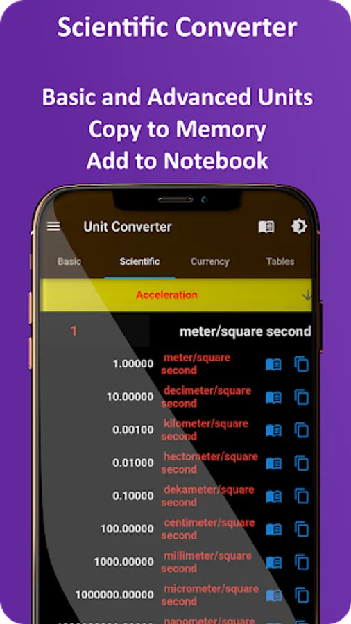 The metric conversion calculator app provides measured transformation tables for rhythmic method conversions. It displays an index of units in the metric-to-imperial Transformation graphs of dimensions guiding simple imperial-to-metric or metric-to-imperial transformation of the Units in measurement. π€π