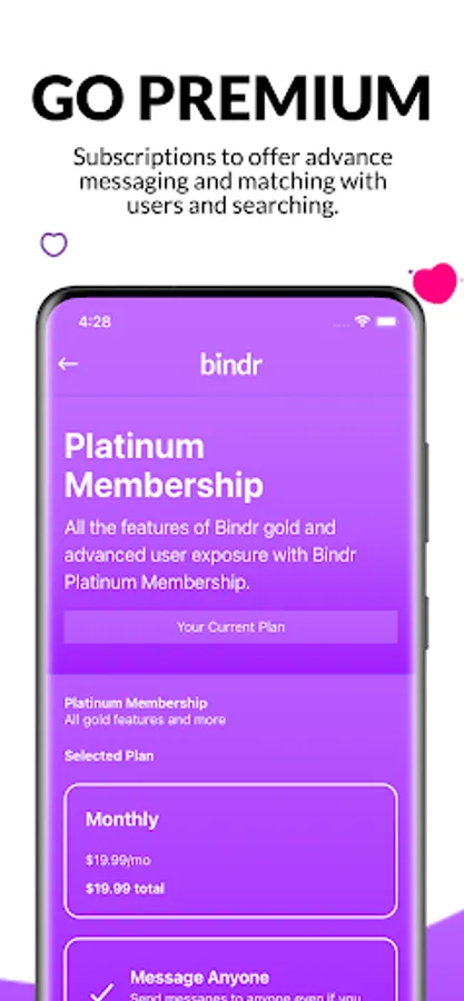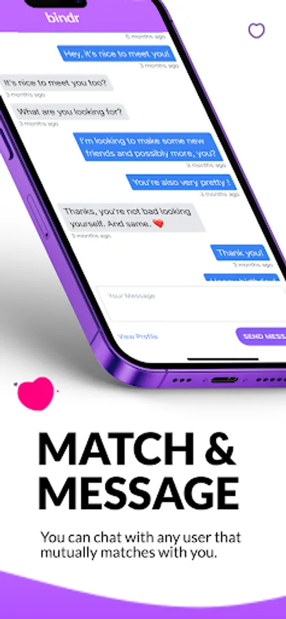 We allow our users to match with other people and couples to message them completely free. We found that other platforms claim to be "free" but won't actually let you message and interact with other users. That's where Bindr comes in to fill in the gap for those that identify as bisexual as the first app of it's kind to offer that functionality. Once you've matched with a user you'll be able to send messages back and fourth!