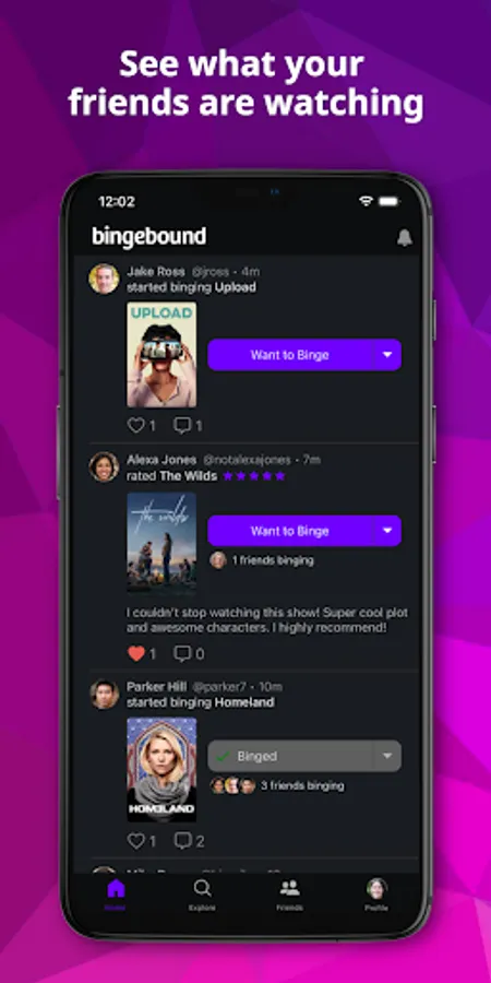Discover what shows your friends are watching and keep track of your own activity on Bingebound!