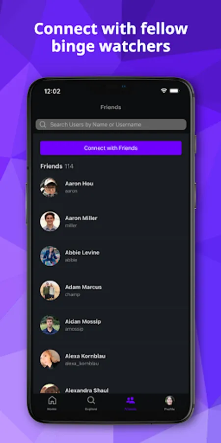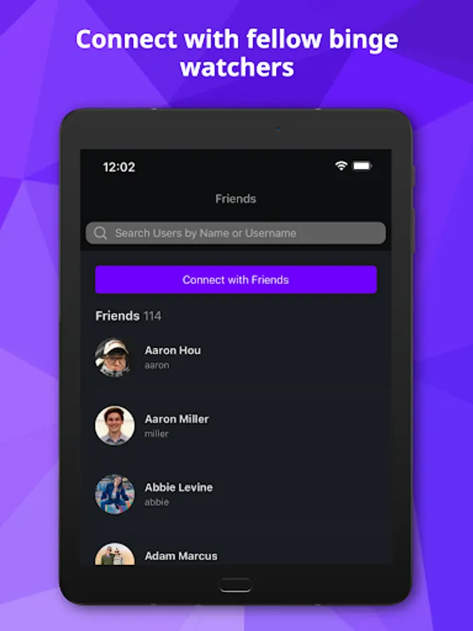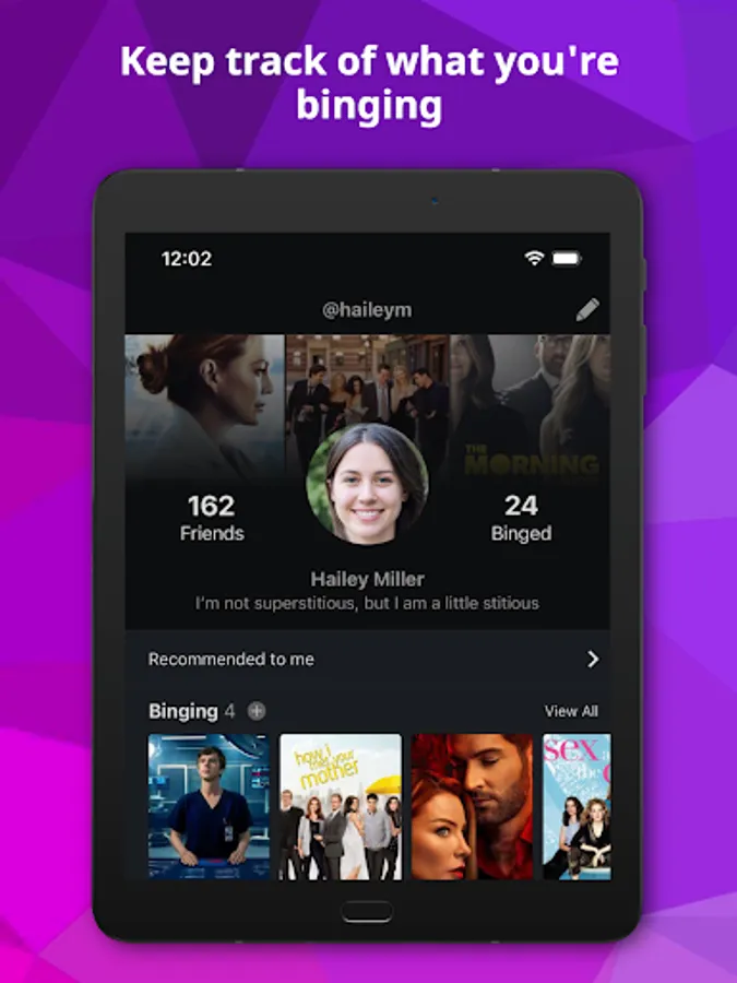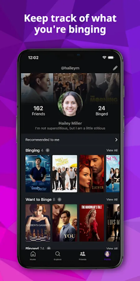 - Build a profile with your show lists: Binging, Want to Binge, and Binged.