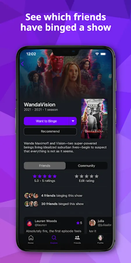 Scroll through your feed and read reviews from your friends to determine if their latest binge will be your next favorite show.
