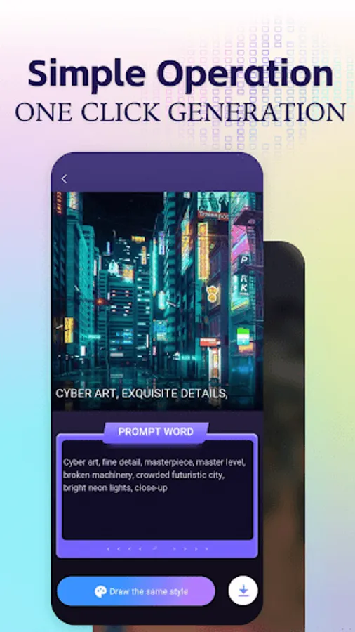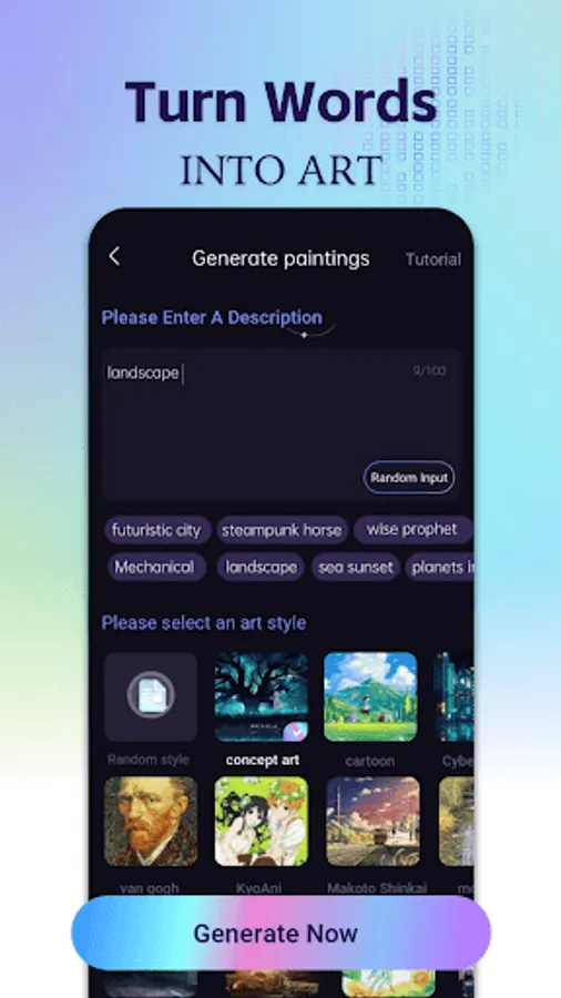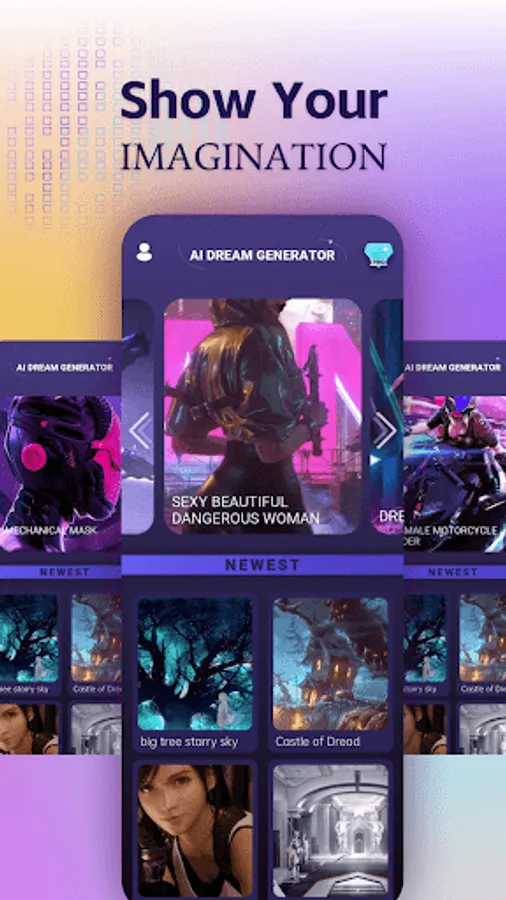 AI Dream Generator is a picture editing tool software that focuses on rich artistic and cultural atmosphere. You don't need high artistic talent, you can choose your favorite picture proportion, artistic style and artist faction according to your favorite text, and automatically generate works of art like Van Gogh, Leonardo da Vinci, Monet and other masters. As long as you simply operate your fingers, a paragraph of text can generate a beautiful art picture.