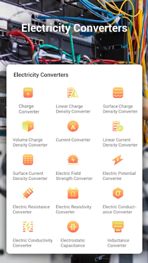 - Electricity Converters: Charge, Current, Electric Potential, Electric Resistance, Electric Conductance, Electrostatic Capacitance, etc.