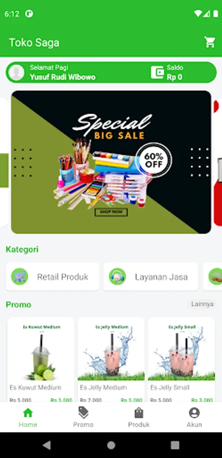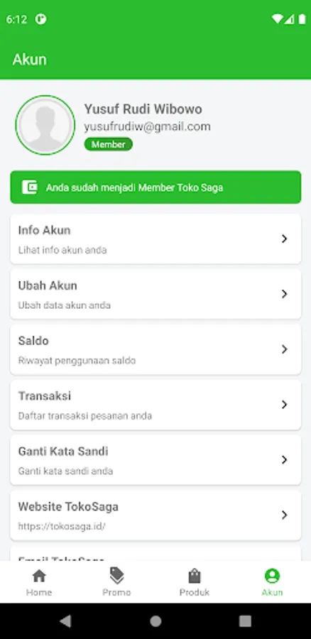 Toko Saga is an online store with a payment system using a balance. You must first register to become a member and top up your balance to shop at Saga Stores.