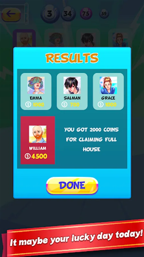 Full House: The ticket with all the 15 numbers marked first.