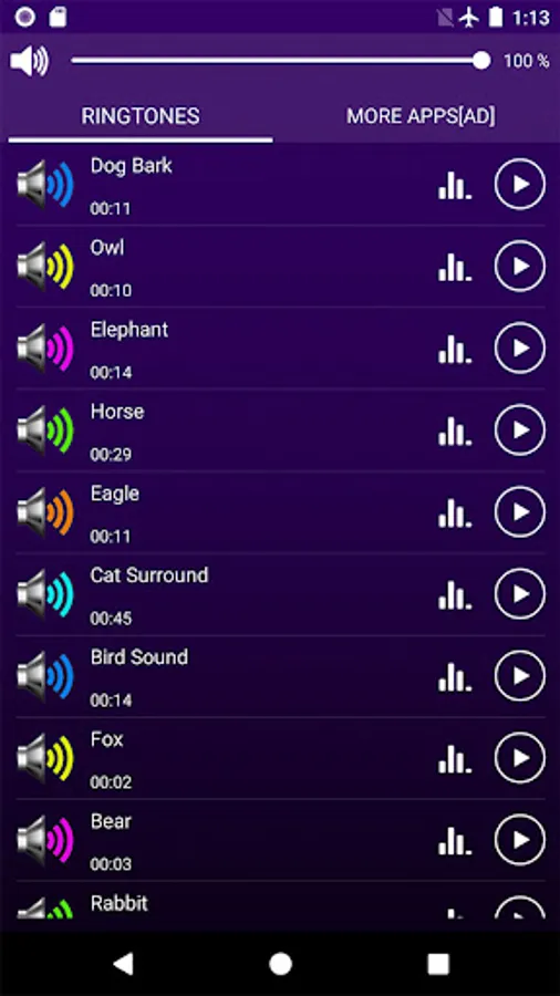 Open this best free 3D animals sounds ringtones & animals wallpapers application, you can press the " play " button to listen to the MP3 ringtones.