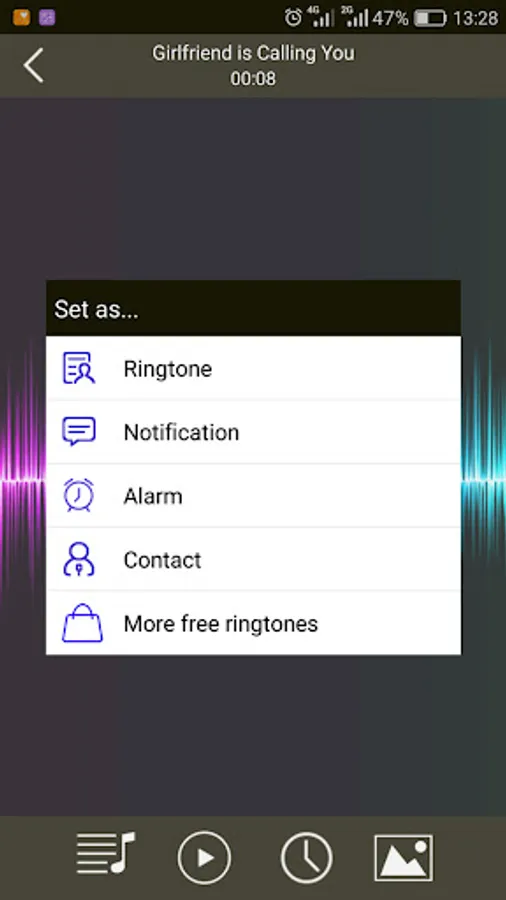 You can also set these ringtones as your default ringtone, alarm clock or SMS tone!