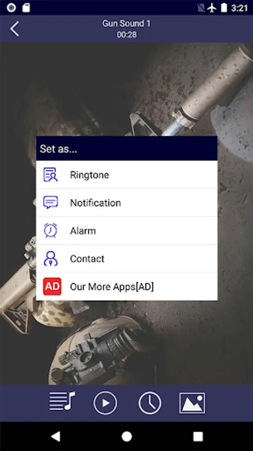 4, Free to set any gun sound as default ringtone, message notifications tone or alarm clock ringtone!