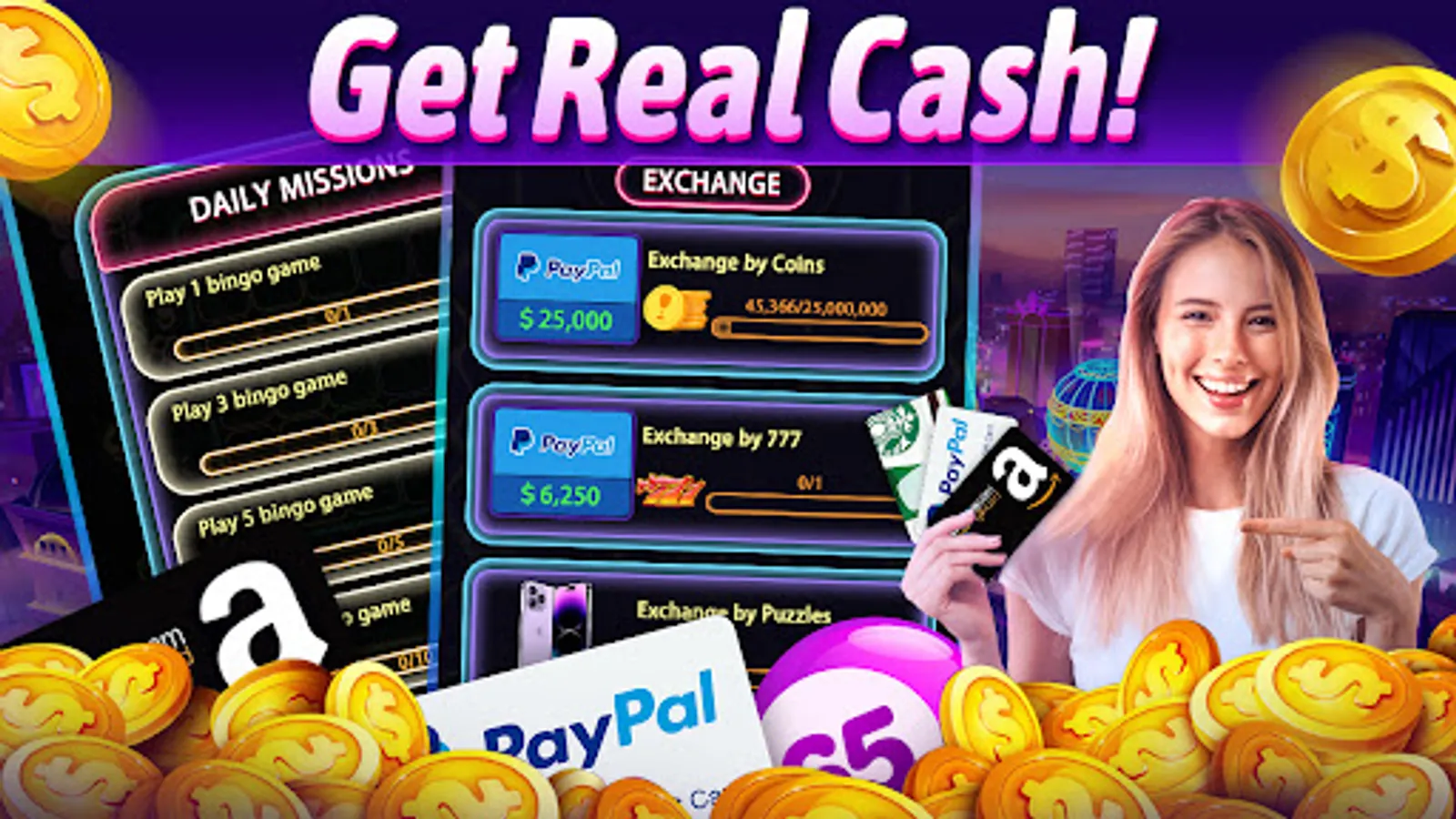 This is a great game of bingo, and there are great rewards for playing it. Want to win free cash in easy bingo games? Then start your bingo journey now! Let you get extra cash for free and enrich your wallet! Win coins in Bingo Winner Cash.