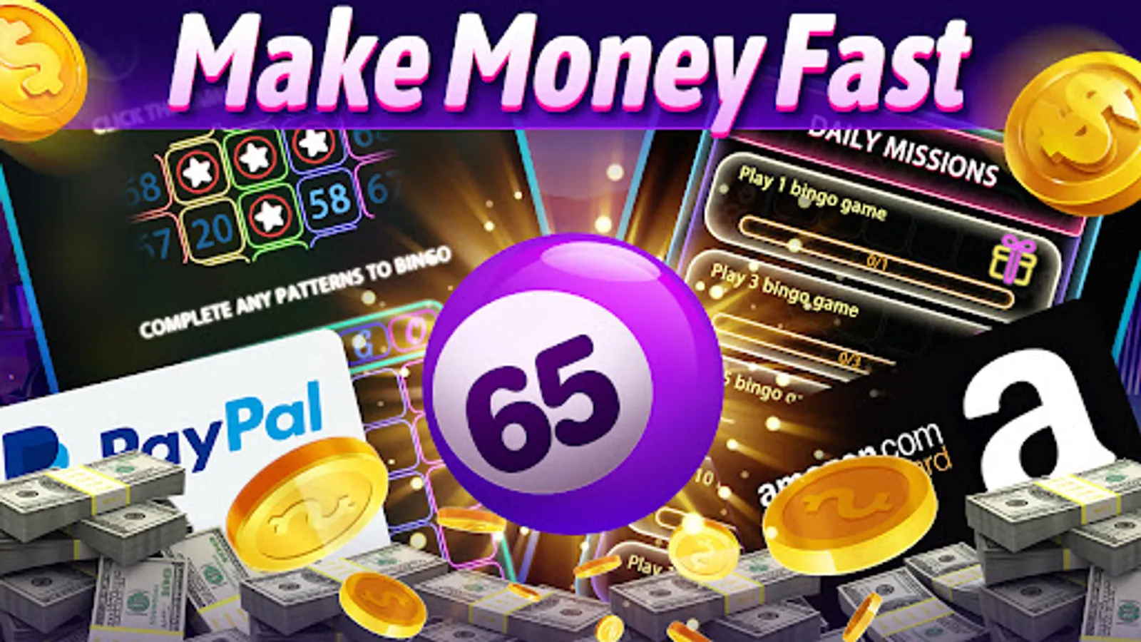 Come play this colorful bingo game! Come play now and then you can get free money. This bingo game brings players a rich visual experience! Cool animations are addictive. If you love free bingo games that shine like neon lights, come and play this Bingo Winner Cash game.