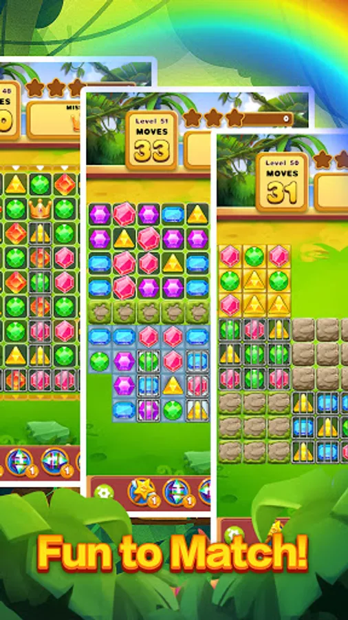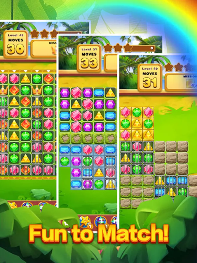 -Match 4 or more same gems will get special gems and help you to complete the levels!