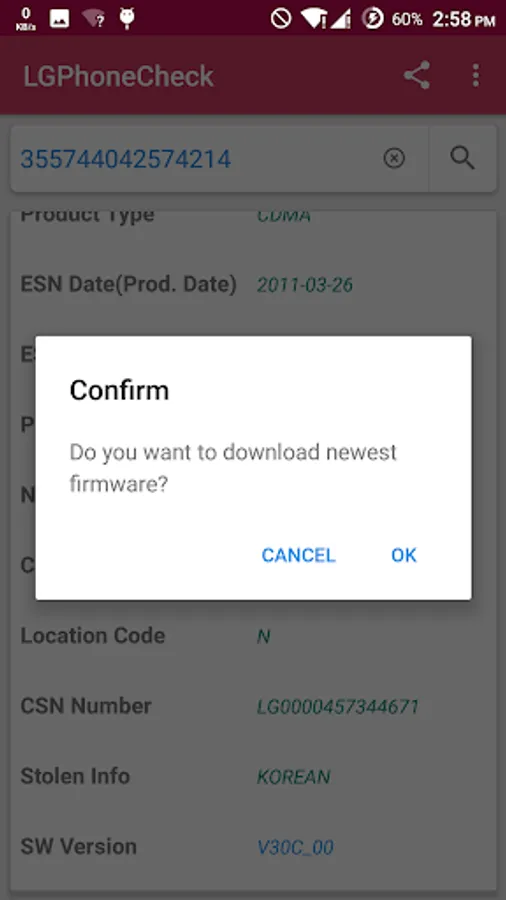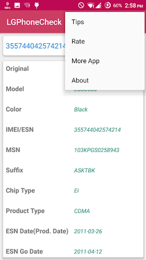 LGPhoneCheck is a tool check information for IMEI LG Devices.