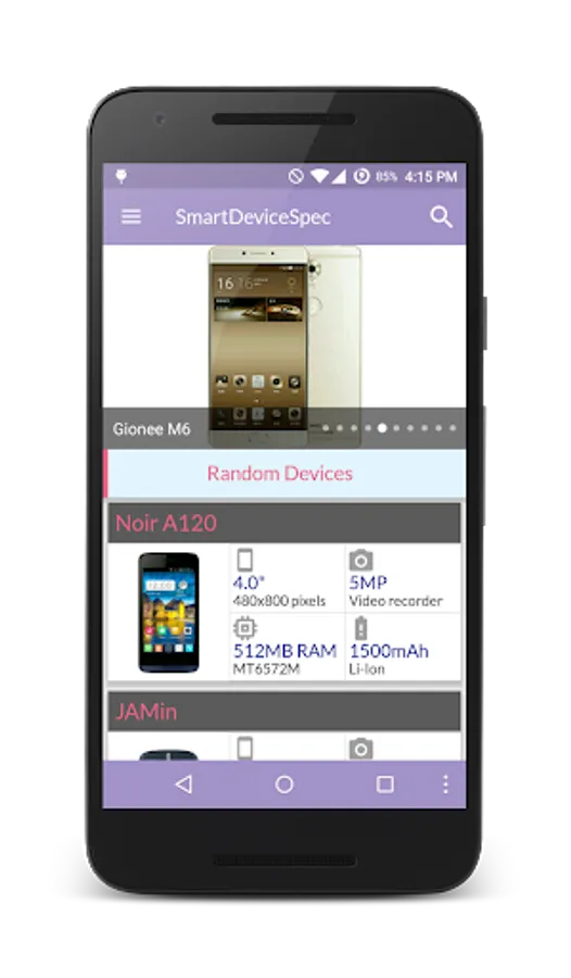 - View detail device spec with some information(Network, Display, Platform.... ).