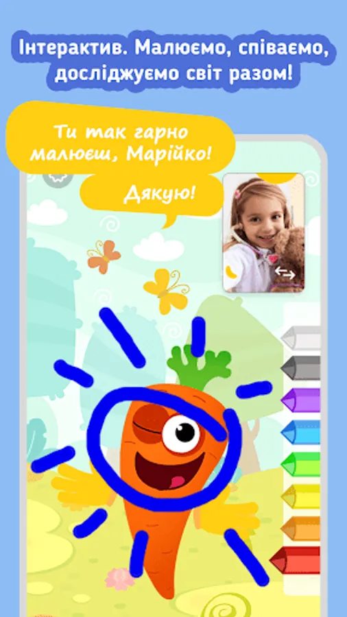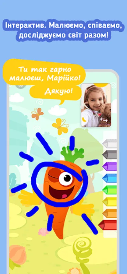 Exercise anywhere and at a convenient time through an interactive mobile application. To draw, play, interact with the character on the smartphone screen, you only need the Internet!