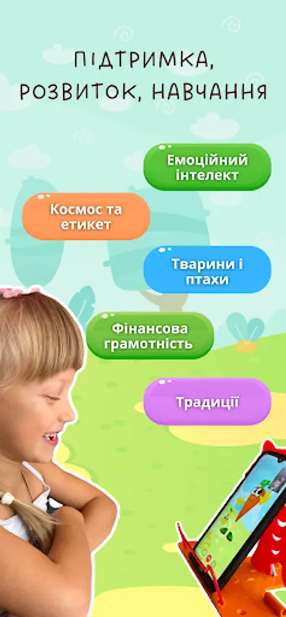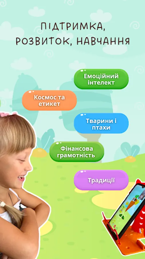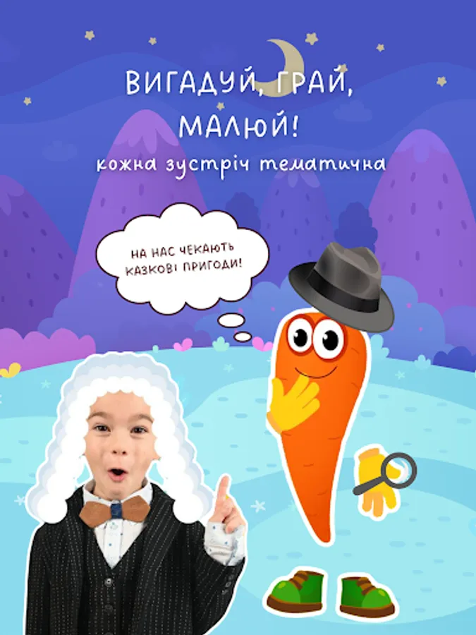 Each meeting is thematic. Through games, quizzes and interactive tasks, the child will gain interesting knowledge about the surrounding world: about animals and birds, space, etiquette, financial literacy, Ukrainian traditions...