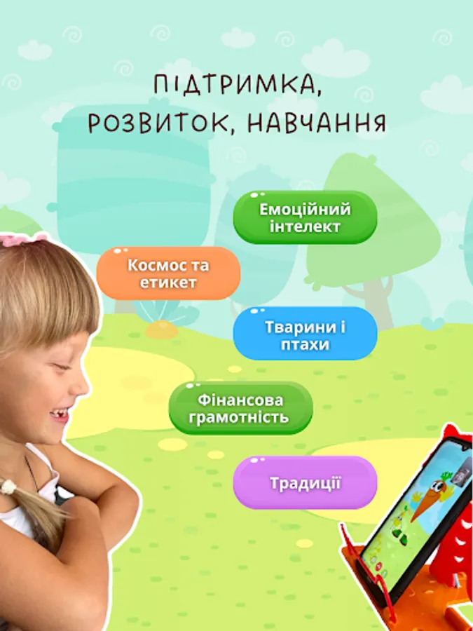 Meetings with Morkvinka are not only communication and support, but also the development of critical thinking and emotional intelligence, empathy, memory, imagination, speech apparatus, important habits and skills, as well as obtaining useful information about the surrounding world. The developers of the program combined warm friendly communication and comprehensive development, which is so necessary for every child!